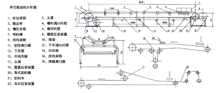 托輥是用無縫鋼管制成,類型有:槽形、平行,調(diào)心,緩沖四種,拉緊裝置:螺旋式拉緊裝置適用于長度較短(小于100m),行程有500m、800m、100mm三種;垂直重錘拉緊裝置,可隨著張力變化靠重力自動(dòng)補(bǔ)償輸送帶的伸長;重錘車式拉緊裝置適于距離較長,功率較大的輸送機(jī),其拉緊行程有2,3,4m三檔,固定絞車?yán)o裝置用于長行程大拉緊力(30-150KN),長距離,大運(yùn)量的帶式輸送機(jī),最大拉緊行程可達(dá)16m。